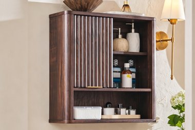 Wall-mounted or floor-standing cabinets to store toiletries and cleaning supplies, making full use of available bathroom space.