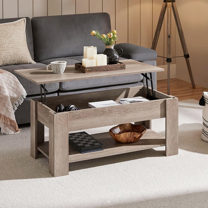 リフトアップコーヒーテーブル リビングルーム用 隠し収納 サイドオープン収納