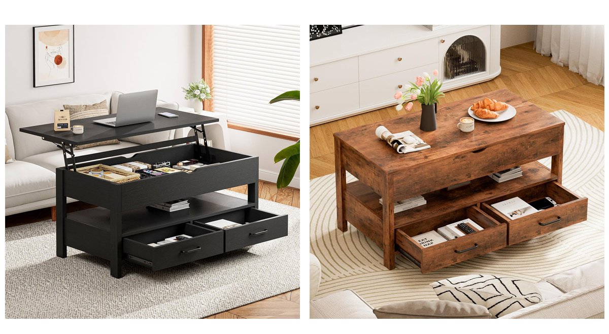 ローテーブル 昇降式 木製 コーヒーテーブル 引き出し付き 収納付き センターテーブル